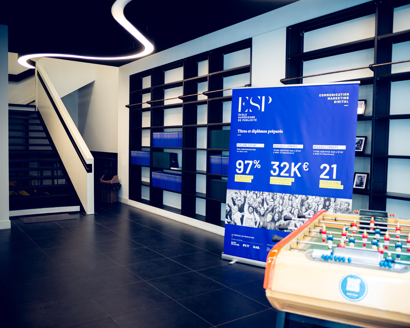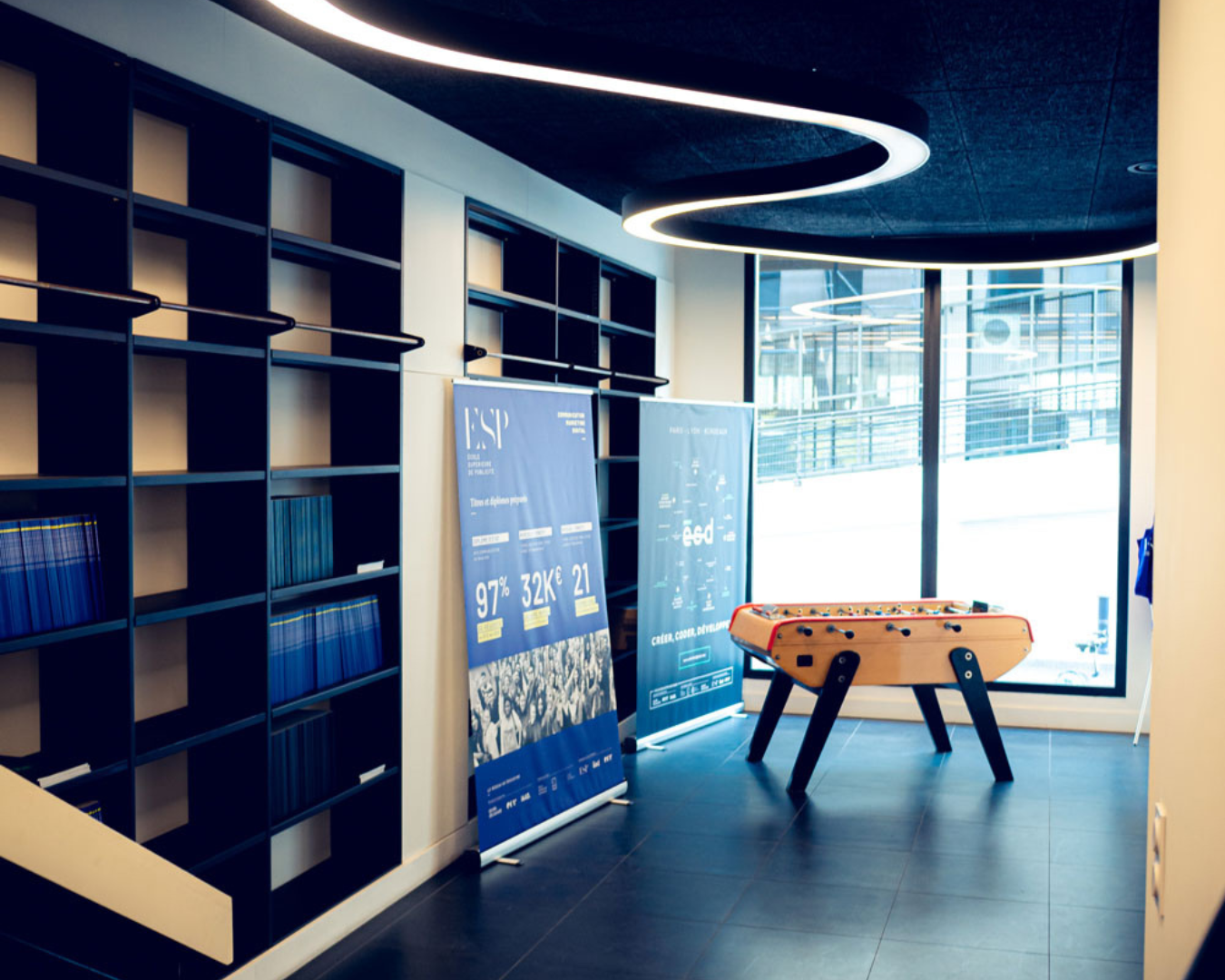 - Des chill zones (baby foot, table de ping pong…) pour des moments de détente entre étudiants !