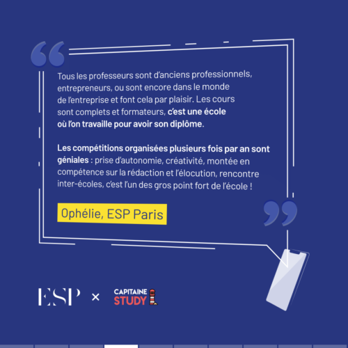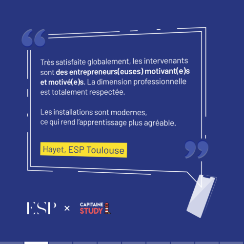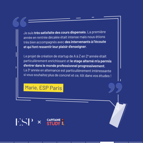 Les étudiants de l’ESP ont exprimé plusieurs points forts de notre établissement à travers leurs avis sur Capitaine Study. Voici quelques-uns des aspects les plus fréquemment mentionnés :