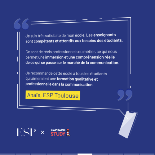 Opportunités de stage et d’alternance : Les étudiants soulignent l’importance des opportunités de stage et d’alternance offertes par l’ESP. Ces expériences pratiques permettent aux étudiants de mettre en pratique leurs connaissances et de se familiariser avec le fonctionnement réel de l’industrie de la publicité.